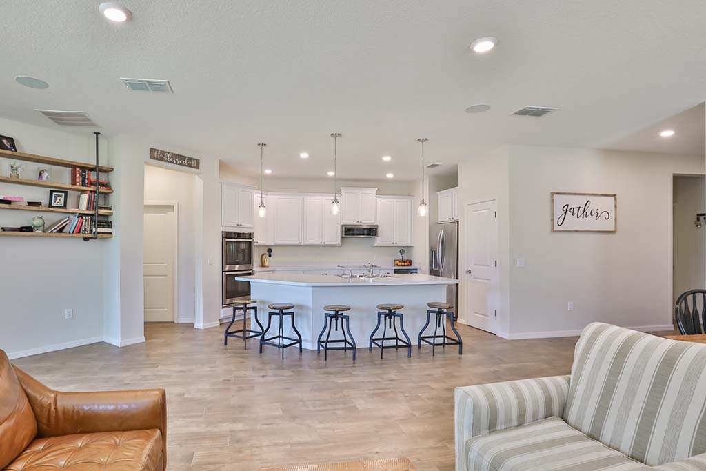 Light, bright and beautiful - that's the best description for this charming 4 bedroom 2 bath home located on the quiet streets of Mirabella. The front exterior has stone accents, fresh landscaping and excellent curb appeal. Once inside you will fall in love with the UPGRADED FLOORING THROUGHOUT - NO CARPET , open floor plan, and high end light fixtures. The GOURMET KITCHEN boasts of cooktop, double ovens, top of the line stainless steel appliances, and wine fridge. There is a formal dining area and open concept living room keeping everyone together during cooking time and provides the perfect environment for entertaining. The master bedroom has warm inviting color scheme and has a walk in closet. The master bath has dual vanities and a handsomely tiled shower. The other three bedrooms in the front of the house with the 4th bedroom being secluded making an ideal office or game room. Double sliders lead you to the covered back porch. Come experience first hand the warm and cheery energy coming from this wonderful home. All while located in the quaint POOL community of Mirabella.