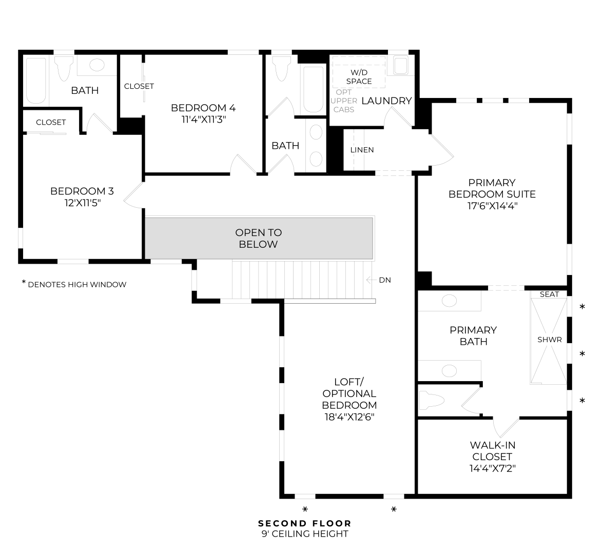 The Scarlet's welcoming porch and extended two-story foyer open immediately onto the spacious great room, bright casual dining area, and views to the desirable luxury outdoor living space beyond. The well-designed kitchen is complete with a large center island with breakfast bar, plenty of counter and cabinet space, and ample walk-in pantry. The expansive primary bedroom suite is enhanced by a palatial walk-in closet and spa-like primary bath with dual vanities, large luxe shower with seat, and private water closet. Central to a generous loft, secondary bedrooms feature sizable closets, one with private bath, one with shared hall bath with separate dual-sink vanity area. Additional highlights include a versatile bedroom with closet and shared hall bath off the foyer, convenient everyday entry and drop zone, centrally located laundry, and additional storage throughout.