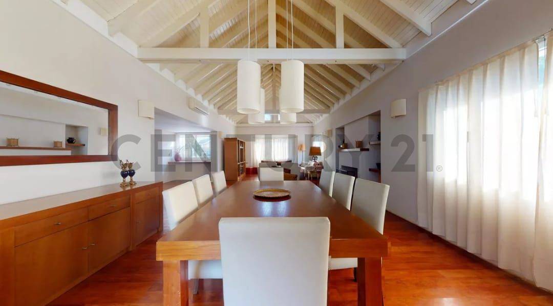 - Hall de recepción y distribución. Amplio living con estufa hogar.- Comedor con acceso a galería y a enorme jardín.- Cocina con barra. - Tres dormitorios con placard. El principal en suite. Bano completo.